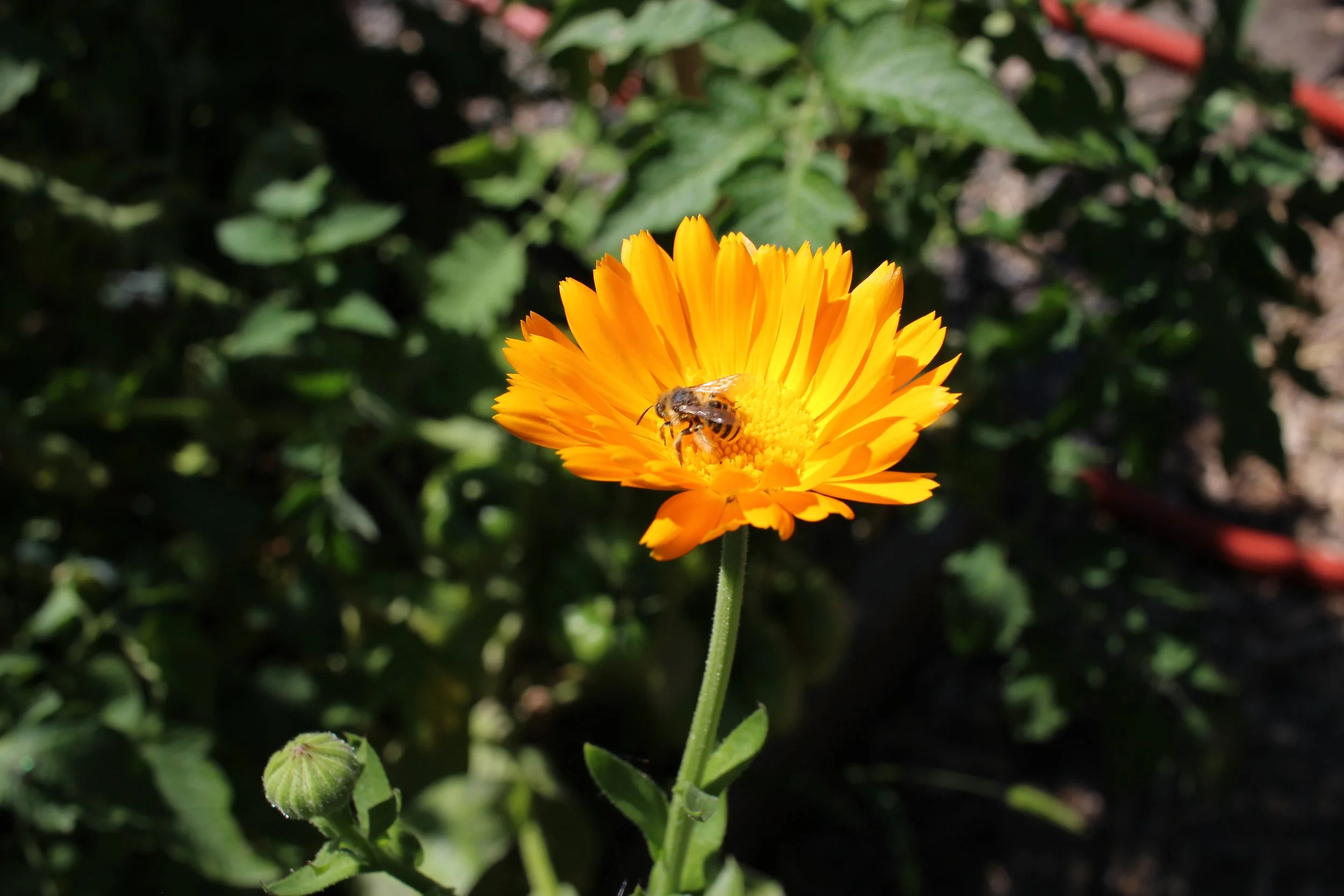 The easiest way to access the medicinal properties of calendula is by drying the flowers and making a tea, you can also sprinkle the petals on salads or quiches. Calendula is an anti-inflammatory and antioxidant herb used topically to treat minor cuts and burns or as a salve or oil for skincare or taken internally to help the body heal and balance from the inside out. And the bees are obsessed with it!